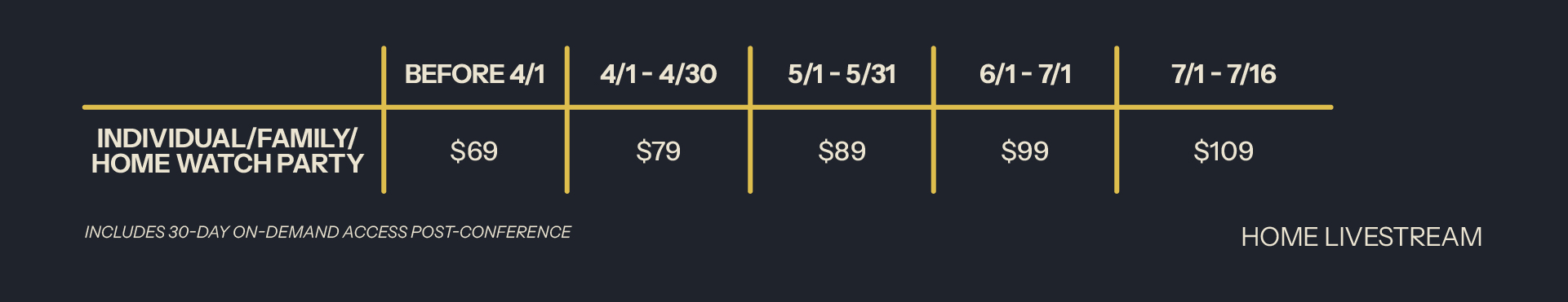 1613 Men’s Conference Ticket & Registration Prices Attend Live in Cincinnati Download Ticket PricingStream from the Comfort of Your Home Download Livestream PricingHost the Conference at Your Church Download Ticket PricingAttend in-person: Attend in-person, and gather with thousands of men in Cincinnati Register NowHost the Event: HOST at your church via our multi-camera, top quality live stream. Learn More